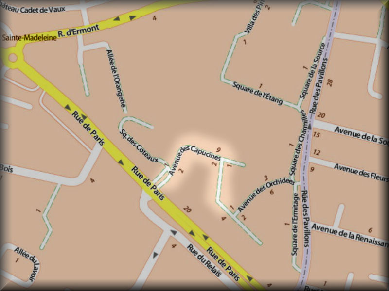 A cet endroit se situait le parc du château de La Crosnière, dessiné par Le Notre, aujourd’hui Résidence du Parc.