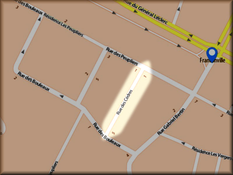 Quartier : des Fontaines Statut : Voie communale. Origine du nom : . Conifère originaire du Moyen-Orient, d'Afrique du Nord et de l'Himalaya, acclimaté en Europe, comprenant des espèces d'arbres majestueux, à bois odorant, à cime conique ou étalée, utilisées pour l'ornementation des parcs. Emblème du Liban. |