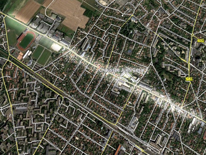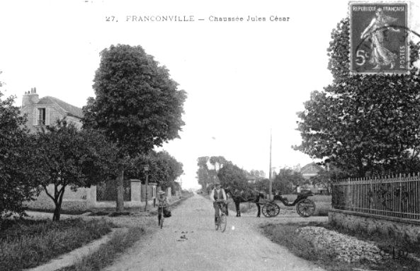 Voie romaine qui reliait Lutèce (Paris) à Rotomagus (Rouen). Mentionnée sur la Carte de Peutinger et l'Itinéraire d'Antonin, la voie qui reliait Lutetia (Paris) à Rotomagus (Rouen) par Briva Isara (Pontoise) a été identifiée au tracé remarquable de la chaussée Jules-César qui parcourt le plateau du Vexin français, dans le Val-d’Oise. Construite à partir du premier quart du ier siècle dans le cadre du vaste réseau routier aménagé par Rome en Gaule, elle se poursuivait jusqu’à l’estuaire de la Seine à Juliobona (Lillebonne) puis rejoignait la Manche, probablement à Caracotinum (Harfleur). Dans le Vexin français, la voie est conservée sous la forme d’un chemin étonnamment rectiligne qui desservait plusieurs villages et hameaux, et elle constitue l'un des principaux vestiges antiques du Val-d’Oise. En amont, elle a été dénommée sentier des Callais avant les marais de Soisy, chemin du Digne-Chien à Enghien, et parfois chemin ferré avant Pontoise. Remarques : Le 2 mars 1929, la chaussée Jules César est empierrée et raccordée au tout à l'égout. Le 10 avril 1952, viabilisation entre la rue du Plessis Bouchard et le bois de Boissy. Le 14 septembre 1955, fin de la viabilisation.