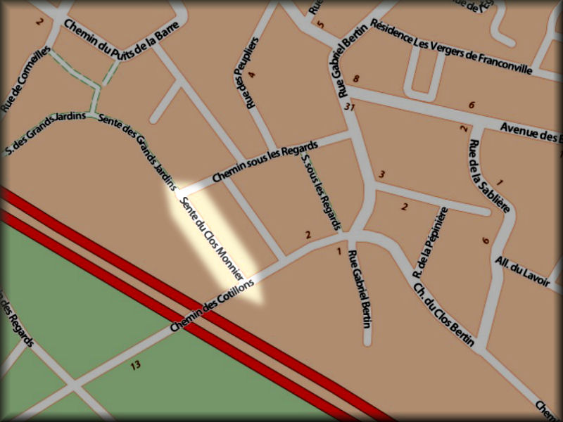 Statut : Sentier en impasse. Longueur : 90 m. Largeur : 4 m. Début : Chemin des Cotillons. Période de création : Figure sur un relevé de 1884.