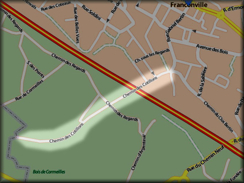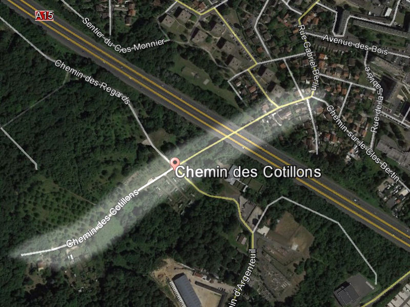 Statut : Voie communale. Longueur : 580 m. Largeur : 5 m. Début : Rue Gabriel Bertin. Fin : Chemin des Regards, puis se poursuit en sentier. Période de création : Existait en 1834. Nom précédent : Chemin viscinal N° 67. Une partie du Chemin des Cotillons figure sous le nom de ruelle de la Pissotte, ainsi nommée car l'eau y dévalait de la côte en ruisseau ou Couture Bateste. Origine du nom : Lieu dit "Les Cotillons". Appelé également "Les Coquillons".
