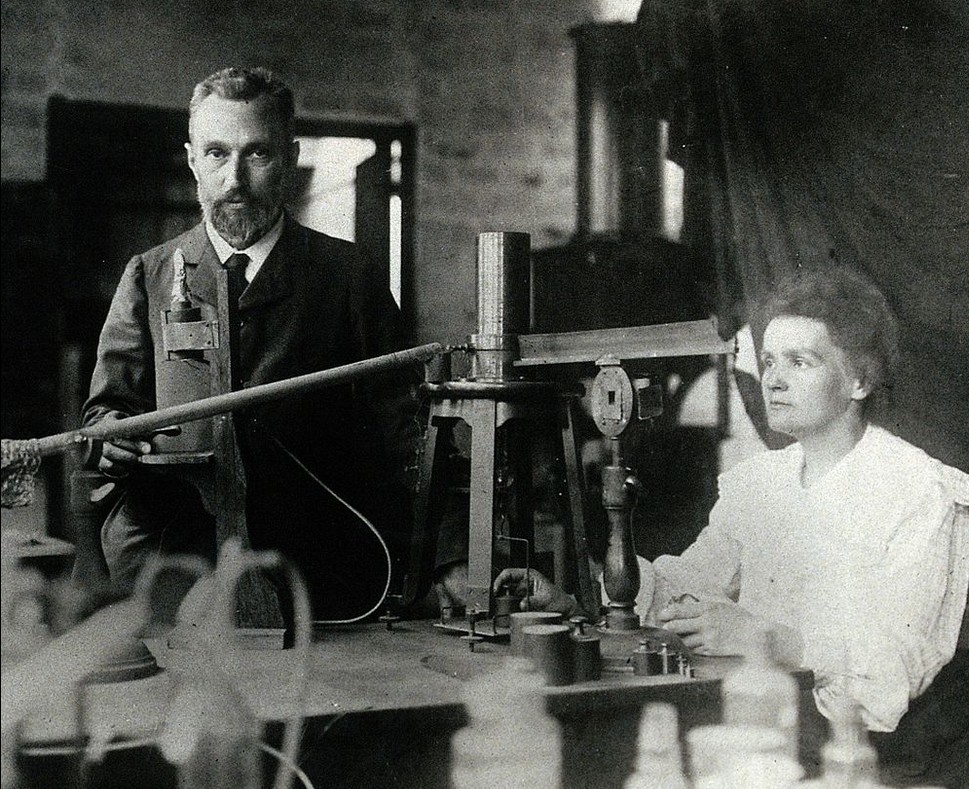 Pierre Curie né le 15 mai 1859 et décédé le 19 avril 1906 à Paris, physicien. connu pour ses travaux en radioactivité, en magnétisme et en piézoélectricité. Marie Curie née Maria Skłodowska en Pologne le 7 novembre 1867 et morte le 4 juillet 1934 à Passy Haute-Savoie. Physicienne polonaise naturalisée française, elle obtient en 1903 le prix Nobel de physique avec son mari Pierre Curie et Henri Becquerel, pour ses travaux sur la radioactivité.