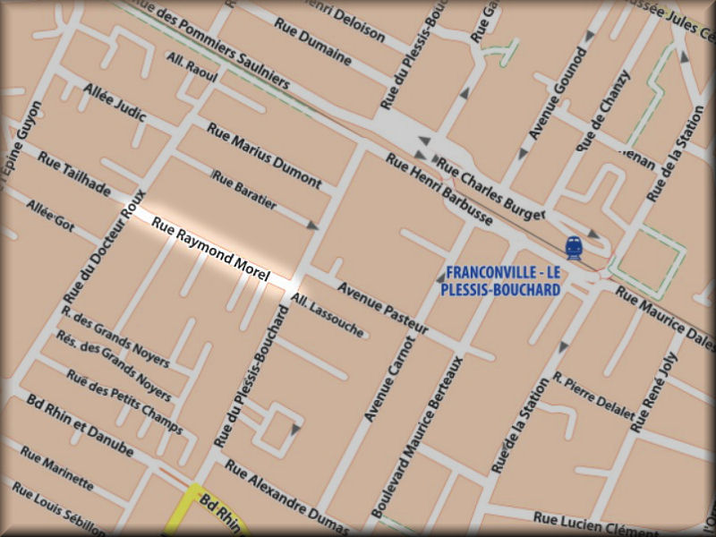 Statut : Voie communale. Longueur : 250 m. Largeur : 5,50 m. Début : Rue du Plessis Bouchard. Fin : Rue du docteur Roux. Nom de baptême successif : Rue de la Jussienne. Origine du nom : MOREL Raymond Maurice Albert, Conseiller Municipal de Franconville né le 10 juillet 1908 à Coulommiers. Arrêté le 28 août 1943 à Brie-Comte-Robert, au camp de Buchenwald. Décédé en déportation le 3 février 1944. Déclaré « Mort pour la France » le 30 avril 1948. Un Arrêté du Ministère des Anciens Combattants en date du 6 octobre 1993 décide d'apposer la mention «Mort en déportation» sur les actes de décès. Remarques : Le 14 février 1902 le chemin de la Julienne est élargi de 3 m à 7 m. Le 30 novembre 1961, une maison explose au 14 bis à la suite d'une fuite de gaz.