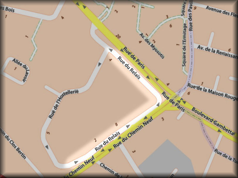 Remarque : Cette voie dessert la résidence des Bûcherets et borde en grande partie la rue de Paris et la rue du chemin neuf.