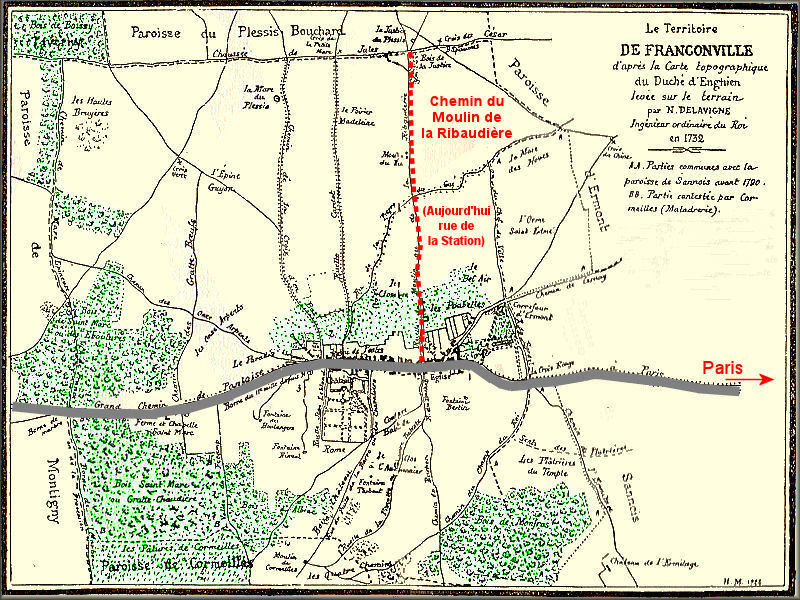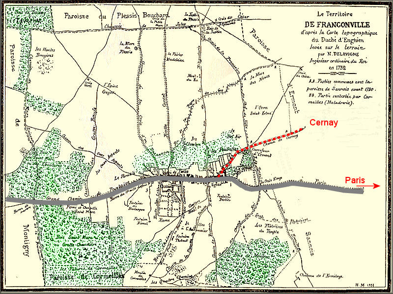 A travers les siècles, la situation de Franconville est toujours apparue comme un lieu de passage entre Paris, Pontoise et la mer. En sont témoins la Chaussée Jules César, la route nationale et plus récemment l’autoroute, sans oublier le réseau ferré destiné à l’origine pour rejoindre Bruxelles. | ![]() |