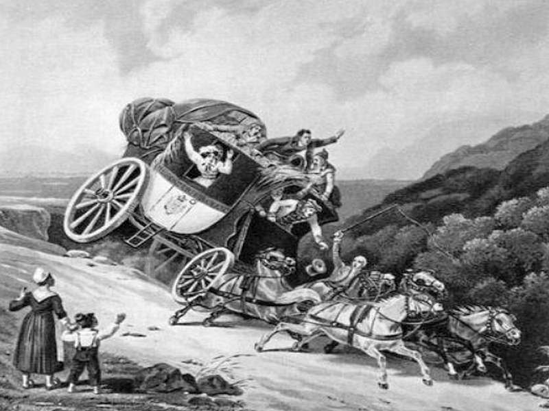 Les postillons devaient aller vite et arriver malgré tout. Beaucoup de diligences, entre 1677 et 1715, sur une route en terre battue, endommagée et pleine d’ornières, mal éclairée et bordée de fossés, versèrent.