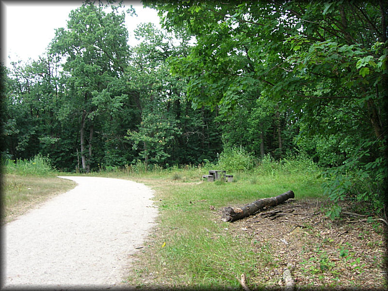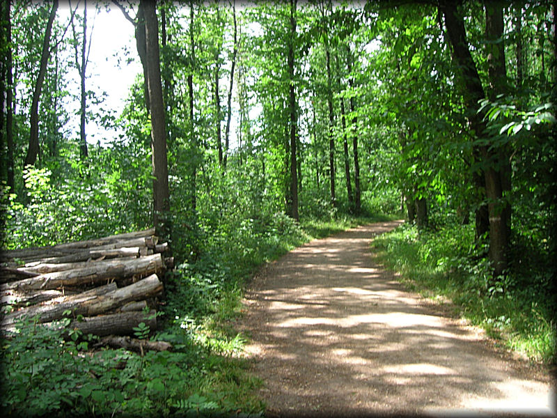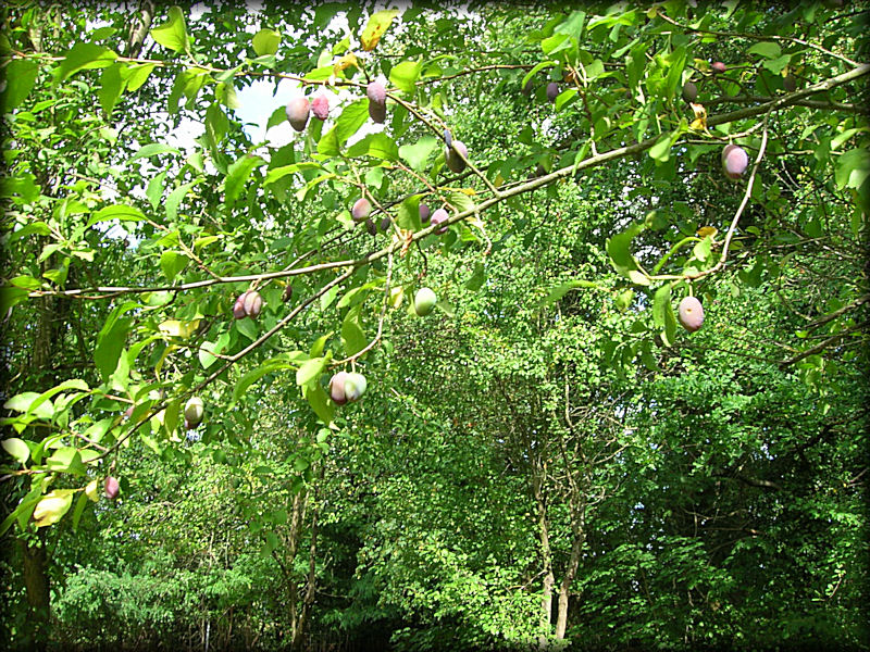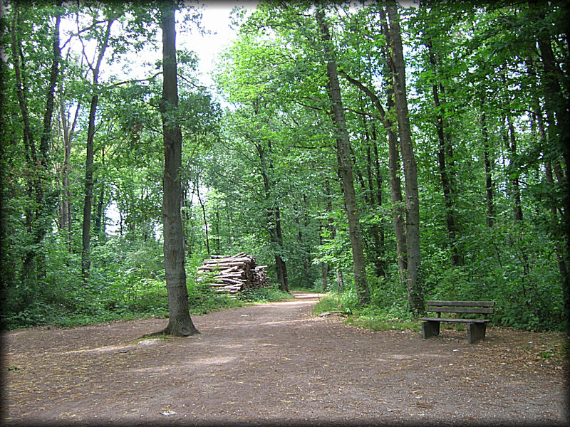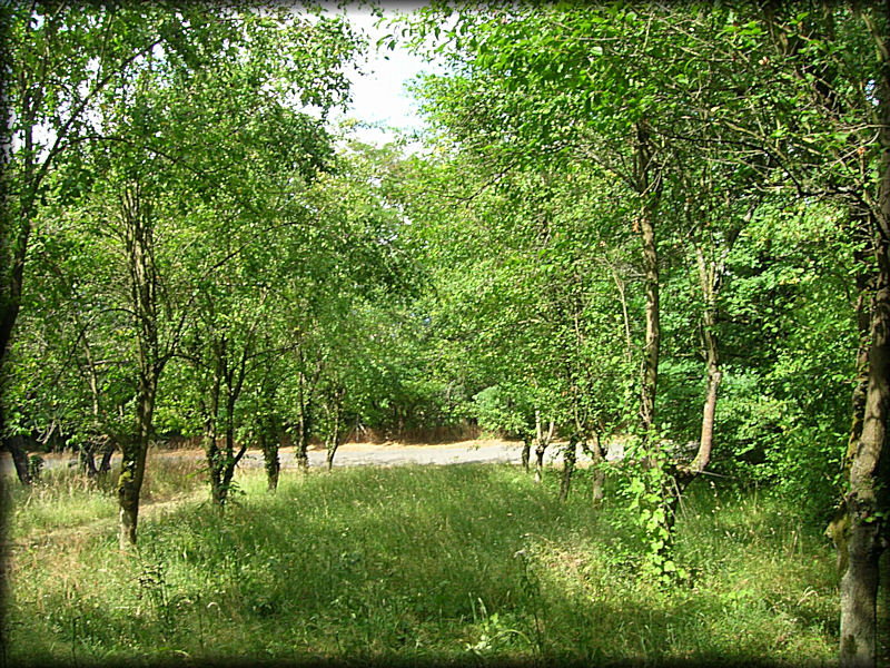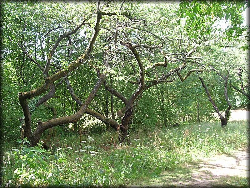 Clogo gps petitet endroit étant très proche de l'autoroute et de ses nuisances sonores, on peut s'en éloigner pour retrouver le calme de la forêt, en empruntant un petit sentier sur la droite qui contourne une imposante cépée de laurier. Il traverse d'un côté un ancien verger de pruniers (des quetschiers) et de l'autre une rangée de vénérables cerisiers (bigarreaux) aux ramures sombres et torturées.