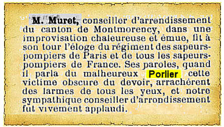 A la demande de sa famille, le corps du caporal Porlier a été dirigé aussitôt après la cérémonie sur Franconville où il sera enterré le dimanche 15 avril 1888.