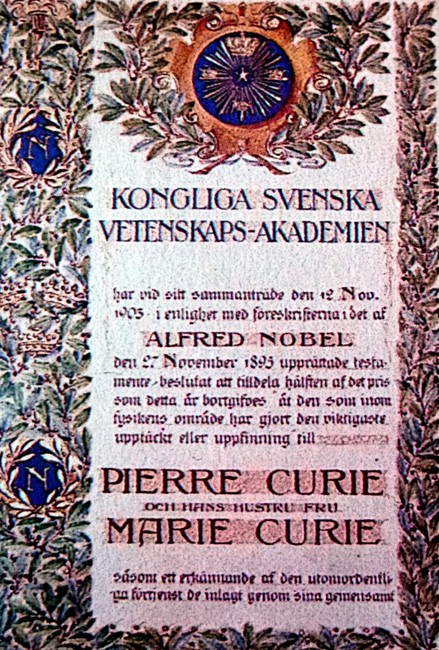 Pierre Curie né le 15 mai 1859 et décédé le 19 avril 1906 à Paris, physicien. connu pour ses travaux en radioactivité, en magnétisme et en piézoélectricité. Marie Curie née Maria Skłodowska en Pologne le 7 novembre 1867 et morte le 4 juillet 1934 à Passy Haute-Savoie. Physicienne polonaise naturalisée française, elle obtient en 1903 le prix Nobel de physique avec son mari Pierre Curie et Henri Becquerel, pour ses travaux sur la radioactivité.