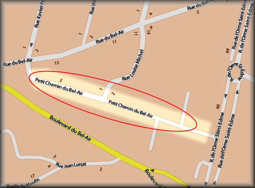 Btn retourNom de la rue : BEL AIR (Petit chemin du)