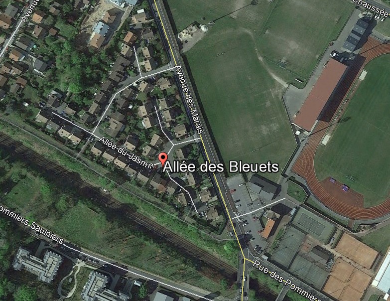 Statut : Voie privée. Longueur : 114 m. Largeur : 5 m. Début : Avenue des Marais. Fin : allée du Jasmin. Période de création : Décision du Conseil Municipal du 15 juin 1984 Origine du nom : Fleur des champs ou des montagnes. Le Bleuet de France est aussi le symbole commémoratif de la Première Guerre mondiale, le surnom de bleuet, était donné par les poilus de la Première Guerre mondiale aux soldats de la classe 1917 revêtus de l'uniforme bleu horizon.