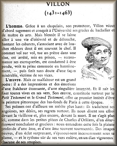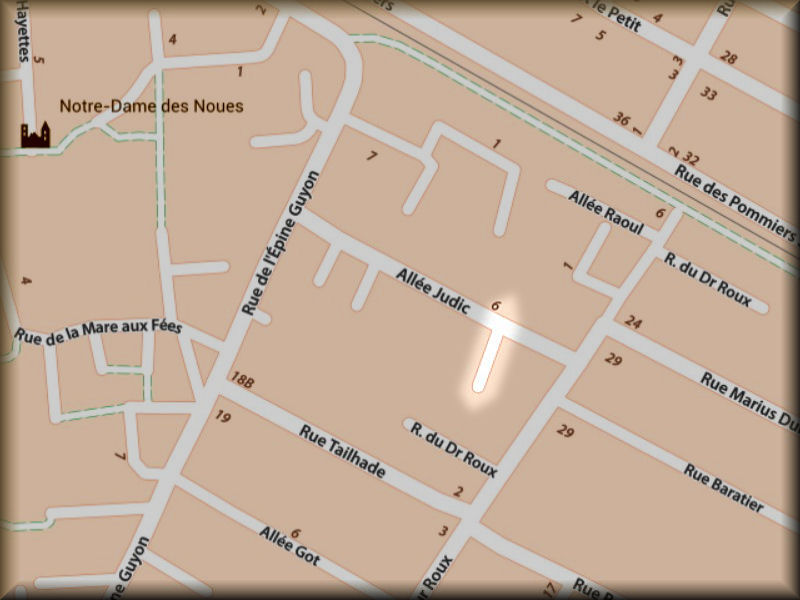 Nom : François VILLON (Rue) Quartier : du Vieux Marché. Statut : Voie privée en impasse. Longueur : 50 m. Largeur : 4 m. Début : Allée Judic. Période de création : Figure sur un plan de 1982.