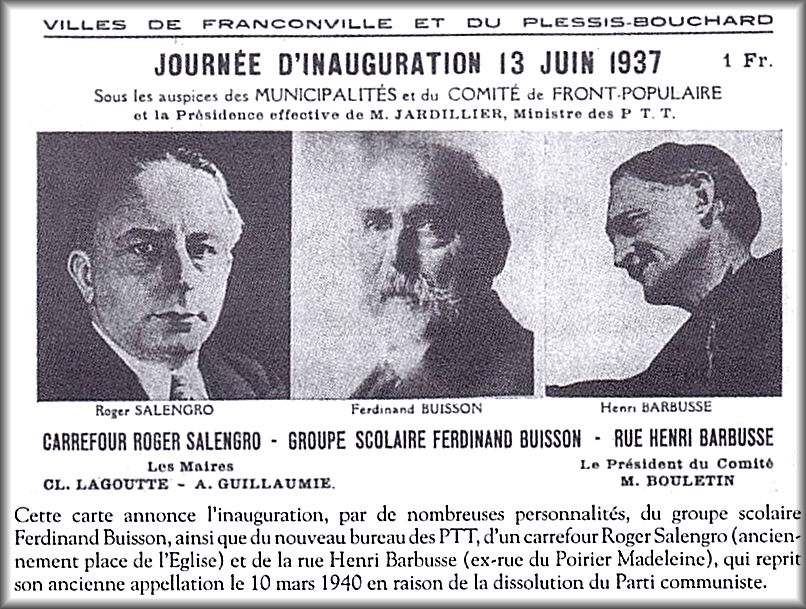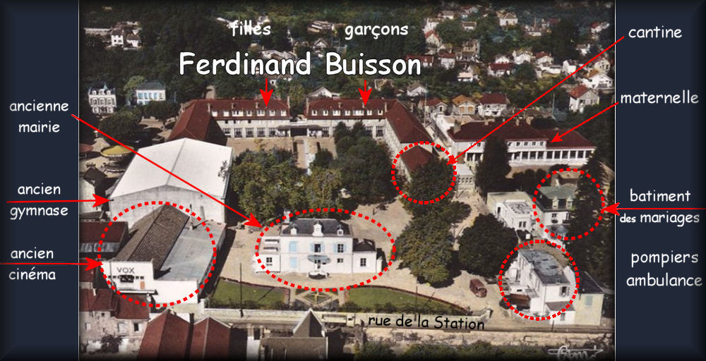 Ainsi prend forme le groupe Ferdinand Buisson qui ne fut inauguré que le 13 juin 1937 par Messieurs LAGOUTTE, GUILLAUMIE respectivement maires de Franconville et du Plessis Bouchard et de Monsieur BOULETIN président du comité du Front Populaire. Après 1950, les salles servant d’école maternelle se délabrent, une nouvelle école est alors construite dans l’ancien potager de la propriété ENDERS devenu troisième mairie. C’est peut être le plus beau des bâtiments scolaires pour l’époque ! Occupé en janvier 1955 il met un point final à cet ensemble Ferdinand BUISSON. |