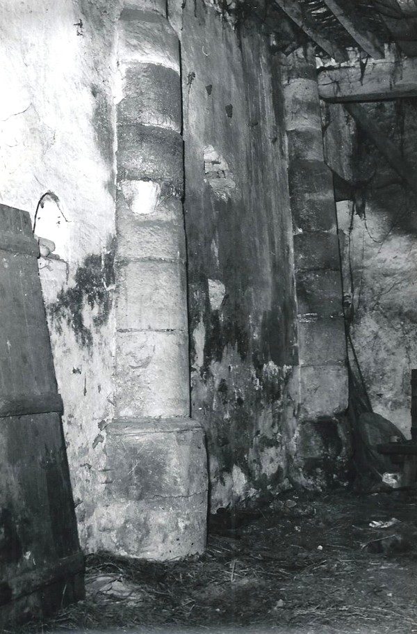 seigneur connu de Franconville, y construisit à la fin du XII ème siècle une petite église dans laquelle il fut enterré en 1200. Transformée en grange dès la fin du XV ème siècle, il en restait encore quelques vestiges dont le chevet, un contrefort et une niche à droite du poteau, représentés sur cette photo.