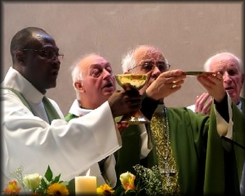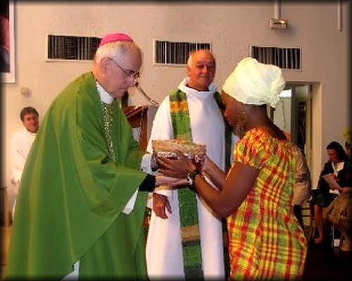 67 Chorale Gospel 69 Pere Claret 70 Pere Hugues Sehounhouedo cure de la paroisse 71 Monseigneur Riocreux et Pere Hugues Sehounhouedo 72 Frere Jean Pere François Le Guere Pere Claret Pere Gérard