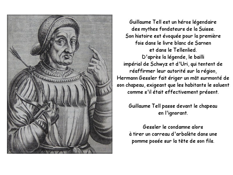 La première, adressée à Guillaume Tell, restaurateur de la liberté helvétique, était ainsi conçue :