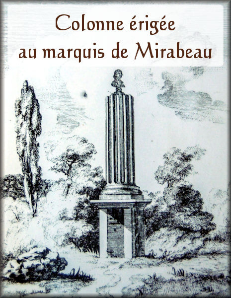 La colonne était érigée à la gloire du marquis de Mirabeau.Le monument se composait d'une colonne tronquée au fût cannelé, supportant un buste du marquis et reposant sur un piédestal carré sur lequel était inscrit simplement "A mon maître".