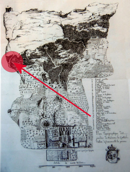 Il était construit sur une sorte de précipice et cette situation devait justifier son nom dont un texte tiré du Roman de la Rose fixé à un arbre voisin commentait l'origine légendaire :