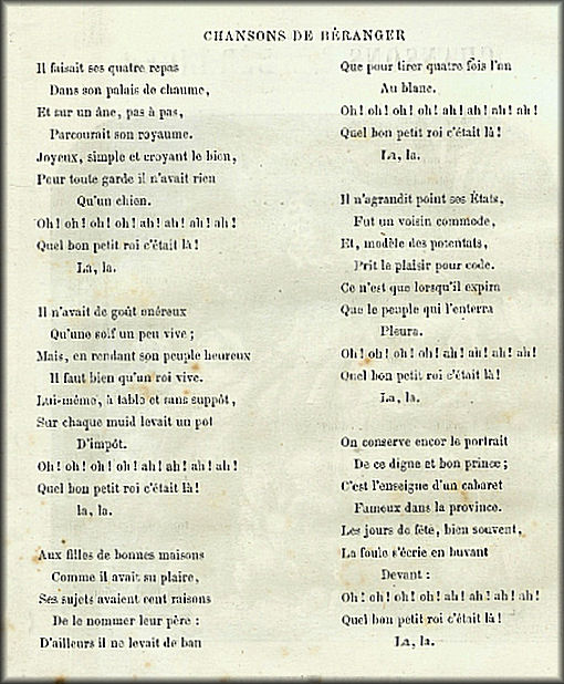 Écouter la chanson sur le Roi d'Yvetot par Béranger⇒