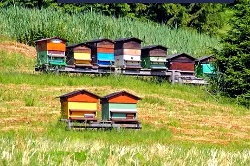 Notre voisin Monsieur Constantin, qui est un ancien paysan, habite une petite ferme devant notre propriété. Il aime avant tout la campagne la nature les animaux et aussi les abeilles. Il nous a raconté avoir eu lui aussi plusieurs ruches lorsqu'il était en Italie (avant la guerre).