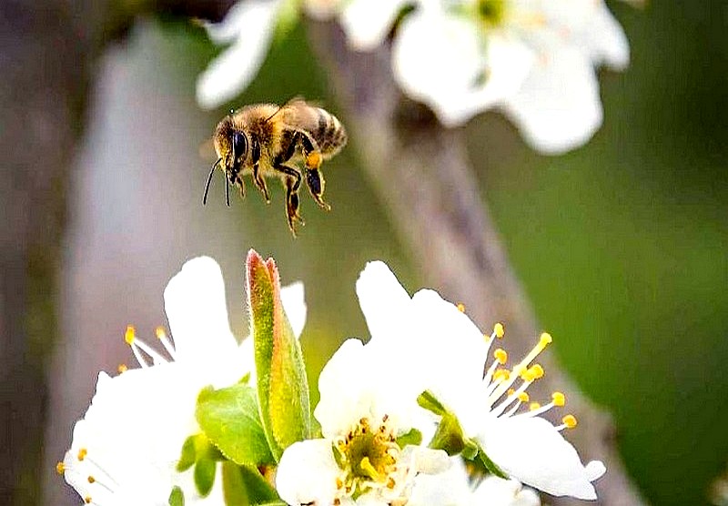 Il faut reconnaître que les abeilles de Monsieur Herriot (et les autres) sont des petites ouvrières bien loin d'être paresseuses. Elles ne se bornent pas à la limite de son verger et se soucient bien peu de son portail, de la chaîne et du cadenas. Au printemps et en été, c'est sûrement elles qu'on entend bourdonner en haut des acacias et châtaigniers en fleurs de la forêt toute proche. Mais, elles s'envolent aussi très loin de leurs ruches, pour butiner les fleurs sauvages et celles des vergers environnants qui couvrent une grande partie de la colline.