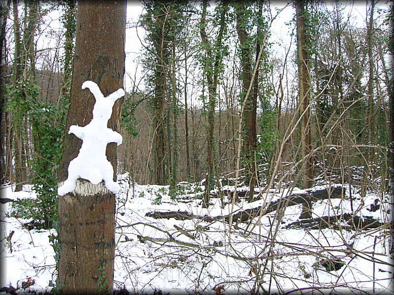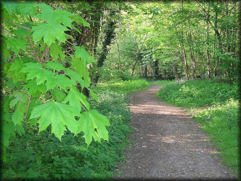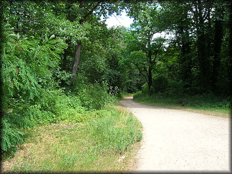 Le sentier s'enfonce ensuite dans la forêt, et se faufile entre noisetiers, charmes, acacias... et ronciers, pour rejoindre à nouveau le Chemin de Cormeilles bordé à cet endroit de hauts talus et de châtaigniers, où un peu plus bas se trouvait une Sablière.