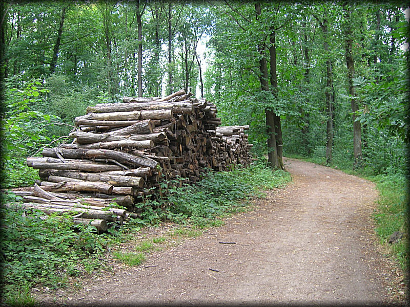 logo gps petitPologo gps petitursuivant le Chemin des Crêtes au bord duquel des tas de bois ou des grumes sont stockés par les forestiers, cette ballade nous conduit bientôt au niveau du chemin de Cormeilles que l'on emprunte sur la droite dans une descente à travers l'épaisse forêt de châtaigniers. Puis sur la gauche un sentier rocailleux et raviné conduit en pente douce à l'orée du Bois des Rinvals, où il débouche au milieu d'une large clairière au pied d'une butte.
