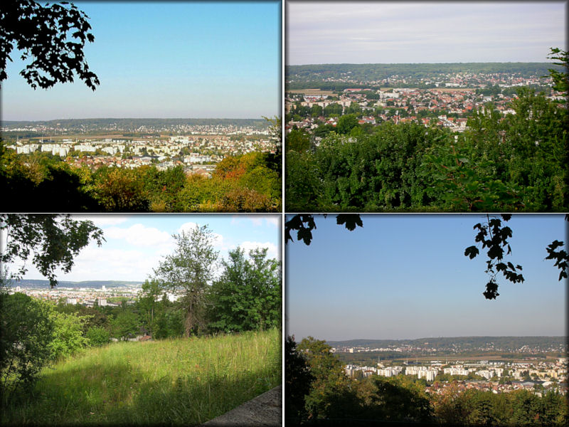 Depuis ce point élevé et derrière le cimetière de Cormeilles, une trouée entre des arbres offre un beau panorama sur toute la vallée, avec une vue plongeante sur Franconville, Sannois, Ermont, situées à nos pieds et en face, Saint-Leu, Saint-Prix, Andilly et toute la colline de Montmorency un peu plus haute que la nôtre avec le manteau sombre de sa forêt qui ferme l'horizon.