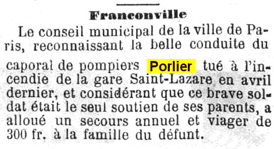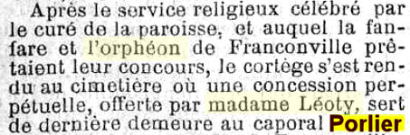 A la demande de sa famille, le corps du caporal Porlier a été dirigé aussitôt après la cérémonie sur Franconville où il sera enterré le dimanche 15 avril 1888.