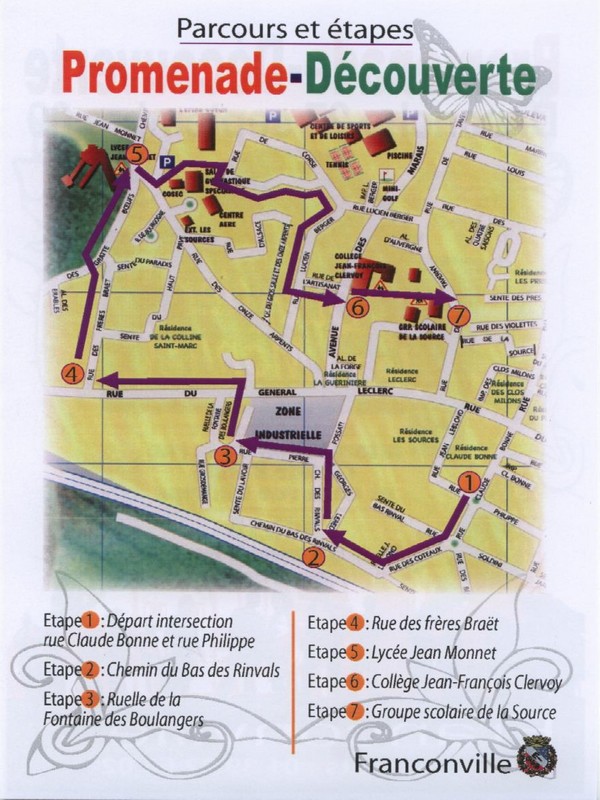 Cette promenade consiste à faire découvrir aux participants le quartier Jean Monnet. Les divers arrêts permettent de découvrir le chemin du bas des Rinvals, la ruelle des Boulangers, la rue des frères Braët, le collège Jean Monnet, le Lycée Jean François Clervoy. Enfin, le groupe scolaire de la Source.