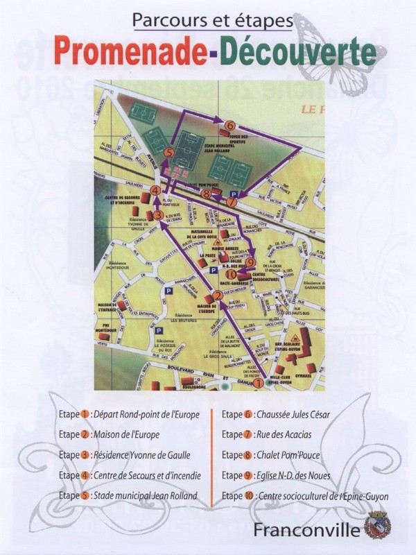 Cette promenade consistait à faire découvrir aux participants le quartier Montédour – Epine-Guyon. Les divers arrêts ont permis de découvrir le Rond point de l’Europe, la résidence Yvonne de Gaulle, le centre de secours, le stade Jean Rolland, la Chaussée Jules César, le châlet Tom Pouce, l’Église de la Mare des Noues. Enfin, le centre Socio-culturel de l’Epine Guyon.